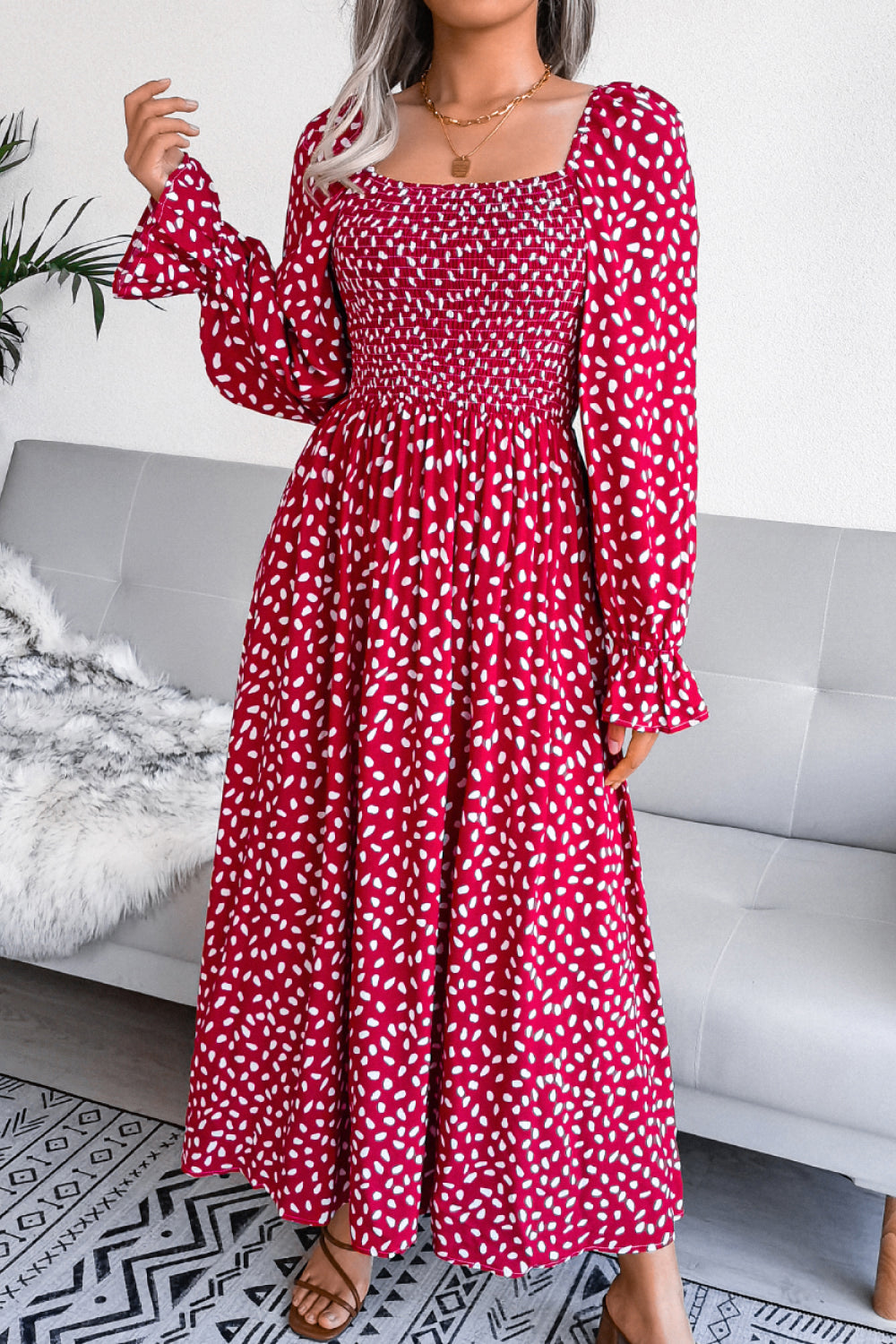 Floral Asymmetrical Plunge Ruffle Hem Dress